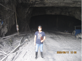 獅牯洞石灰石礦采用平硐+斜坡道開拓。礦山利用礦區東北側現有的PD1平硐口為主運輸硐口(標高+721.8m),主斜坡道已開拓至+700m標高;利用礦區東南側現有的PD2平硐口作為回風硐口及第二安全出口(標高+723.64m)。井下按照設計共布置有+722m及+700m兩個中段,其中+722m中段采用平硐開拓,+700m中段采用斜坡道開拓,中段間采用通風行人天井貫通。井下工作面采用裝載機裝車,慢速自卸車運輸。