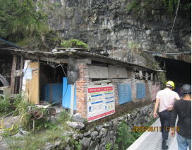 礦山采用平硐+斜坡道開拓,礦井、中段、工作面均具有兩個或兩個以上安全出口。井巷分叉口注明其所在地點或通往地面出口方向,礦山中段及安全出口布置情況均符合設計要求。礦山選用的開拓方式和采礦方法、開采順序符合設計要求,采礦工藝適應礦巖的賦存條件符合設計要求。能執行“敲幫問頂”制度,頂板管理方法可行。天井設有簡易扶梯,并配有護欄,防墜措施符合規定要求。井巷斷面能滿足行人、運輸、通風和安全設施、設備的安裝、維修及施工需要。井巷支護形式及支護質量符合設計要求。目前未發現地面陷落區。礦山能按井巷維修管理制度要求進行維修和管理,井巷掘進符合設計要求。