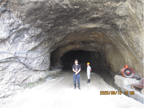 根據(jù)設(shè)計要求,礦山采用平硐+斜坡道開拓,礦井、中段、工作面均具有兩個或兩個以上安全出口。井巷分叉口注明其所在地點(diǎn)或通往地面出口方向,礦山中段及安全出口布置情況均符合設(shè)計要求。礦山選用的開拓方式和采礦方法、開采順序符合設(shè)計要求,采礦工藝適應(yīng)礦巖的賦存條件符合設(shè)計要求。能執(zhí)行“敲幫問頂”制度,頂板管理方法可行。天井設(shè)有簡易扶梯,并配有護(hù)欄,防墜措施符合規(guī)定要求。井巷斷面能滿足行人、運(yùn)輸、通風(fēng)和安全設(shè)施、設(shè)備的安裝、維修及施工需要。井巷支護(hù)形式及支護(hù)質(zhì)量符合設(shè)計要求。目前未發(fā)現(xiàn)地面陷落區(qū)。礦山能按井巷維修管理制度要求進(jìn)行維修和管理,井巷掘進(jìn)符合設(shè)計要求。