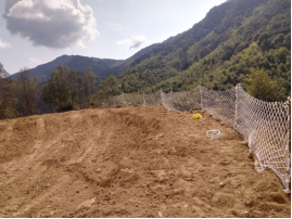 礦山將原1號(hào)采場(chǎng)+460m凹陷采坑一邊作為排土場(chǎng),該凹陷采坑邊坡均為花崗巖體,較為穩(wěn)固,排土場(chǎng)的選址滿足需求。實(shí)際礦山在凹陷坑中間建一座毛石漿砌擋墻(擋墻長(zhǎng)40m,高約3m,壩頂寬約1.5m,內(nèi)外坡比約為1∶0.3),排土場(chǎng)有效堆排面積約3800m2,堆置高度約5m,排土場(chǎng)有效庫(kù)容量為1.9萬(wàn)m³,目前現(xiàn)有排土場(chǎng)內(nèi)已堆排的廢石土量約0.5萬(wàn)m³。 |