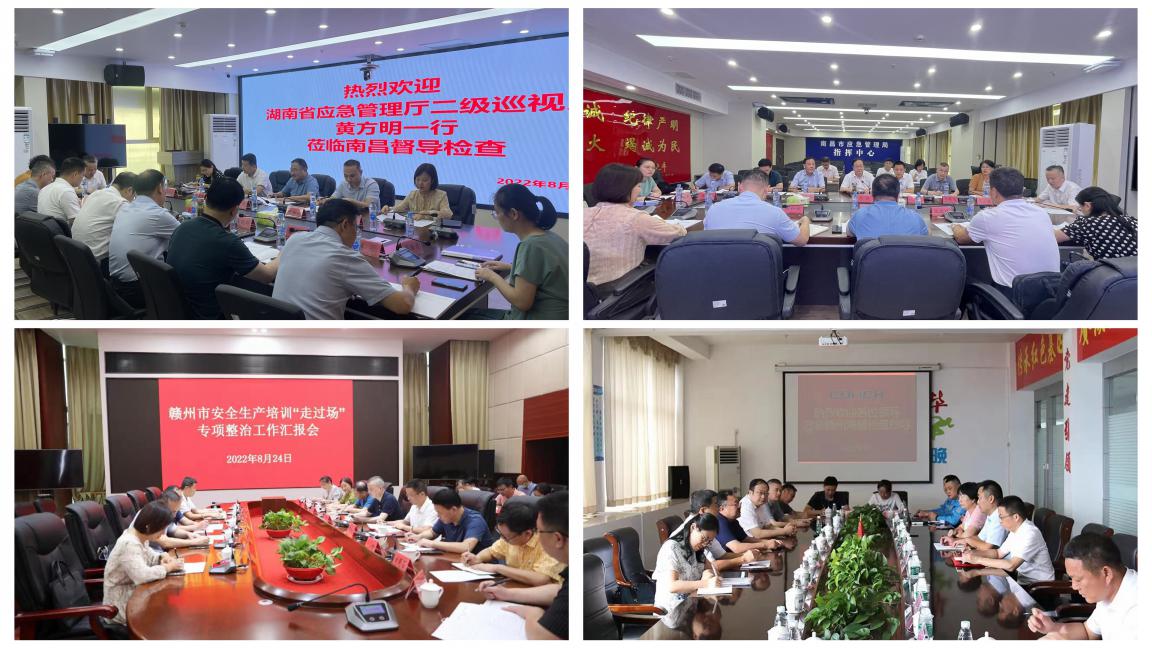 發(fā)布日期:2022-08-30 10:51 信息來源:宣教處 字號:[大] [中] [小]根據(jù)應(yīng)急管理部安全生產(chǎn)執(zhí)法和工貿(mào)安全監(jiān)督管理局《關(guān)于開展安全生產(chǎn)培訓(xùn)“走過場”專項整治督導(dǎo)互查工作的通知》安排,8月22日至26日,應(yīng)急部安全生產(chǎn)培訓(xùn)“走過場”專項整治第18督導(dǎo)組(湖南省督導(dǎo)互查組)來我省開展安全生產(chǎn)培訓(xùn)“走過場”專項整治督導(dǎo)檢查,省廳黨委委員、政治部主任劉闖,省廳宣教處、宣教中心相關(guān)同志,南昌市、贛州市政府領(lǐng)導(dǎo)以及應(yīng)急管理局相關(guān)同志陪同檢查。