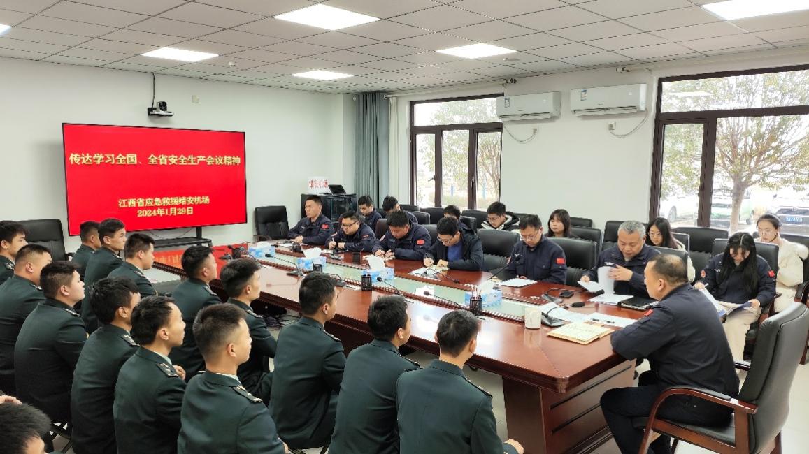 1月29日,省應(yīng)急救援靖安機(jī)場召開專題會議傳達(dá)學(xué)習(xí)貫徹全國安全生產(chǎn)電視電話會議和全省安全生產(chǎn)緊急會議精神,落實省應(yīng)急管理廳黨委書記、廳長徐衛(wèi)明對全廳干部職工的工作要求,部署安全生產(chǎn)有關(guān)工作。